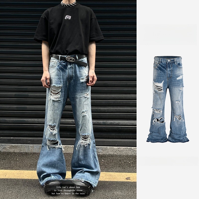 Bring back the spirit of Y2K fashion with our Vintage Distressed Micro-Flare Jeans. Designed for those who love classic streetwear with a modern twist, these jeans feature subtle flared hems, authentic distressed details, and a washed finish that gives them a naturally worn-in look.